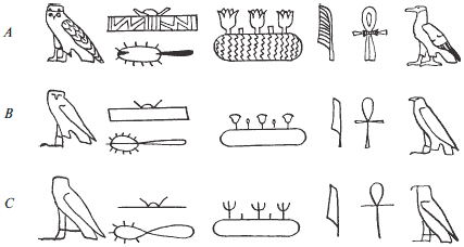 Примеры иероглифических, иератических и демотических знаков